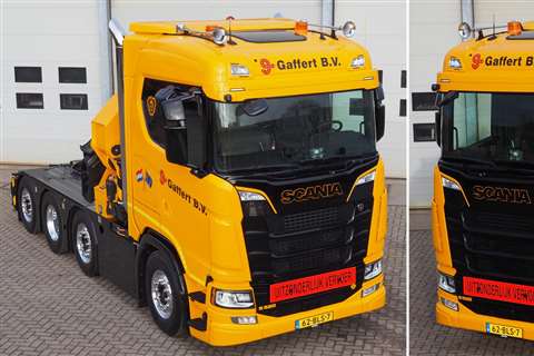 Gaffert customises short Scania heavy haul tractor with mounted crane