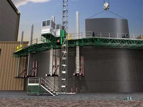 The eight Hydro Mobile M2 mast climbing work platforms will provide the workers with large, seven-foot wide decks, anywhere from 2 to 10 feet in length with access to construct the Unit 4 Shielding Building. The 22,000-pound capacity platforms will have an operating speed of 3 feet/min, power drive system, and hydraulic ratchet drive.