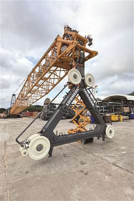 The company’s pile-tiling device allows one operator to tip or turn long and heavy loads, completing jobs that previously required a tandem lift, says Liebherr.