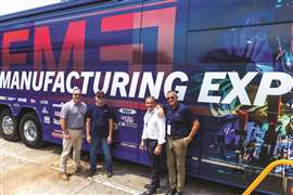 Georgetown Mayor Pro Tem Kevin Pitts and other economic development officials attended the event that highlighted the achievements of the boom truck plant and its workers, and included speeches, lunch and the placement of a Tadano sticker on the huge AEM Manufacturing Express bus.