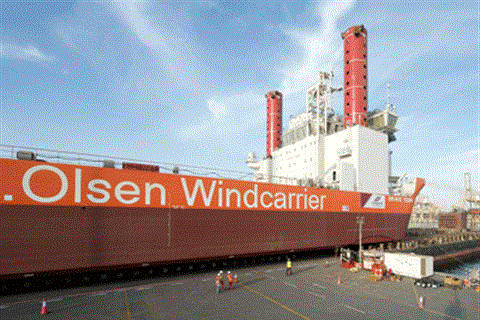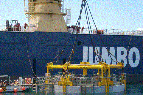 Netherlands-based heavy lift shipping and offshore installation company Jumbo used its DP2 heavy lift vessel Jumbo Javelin for the installation of the first transition pieces (TP) for the Anholt Offshore Wind Farm in Denmark.